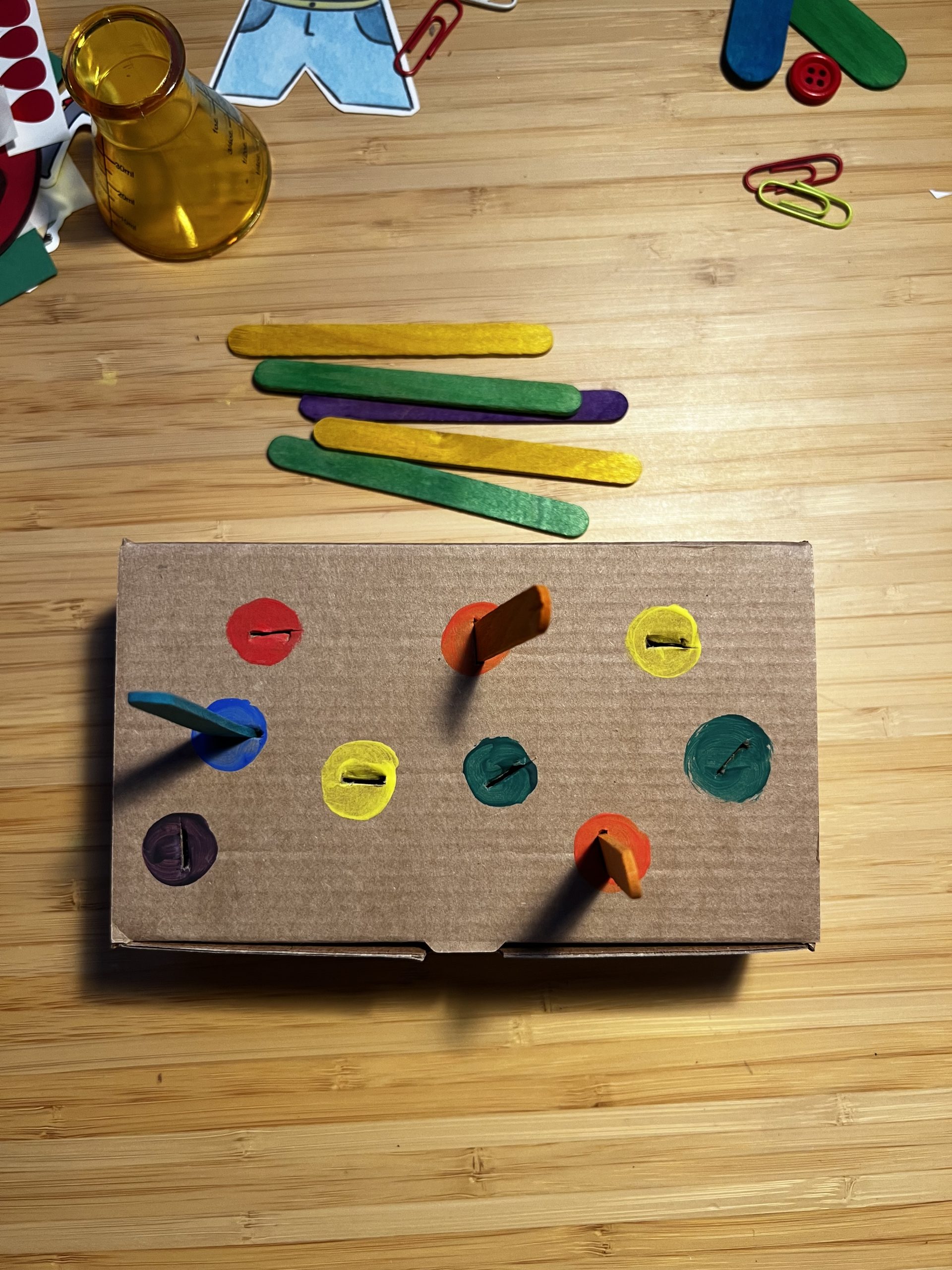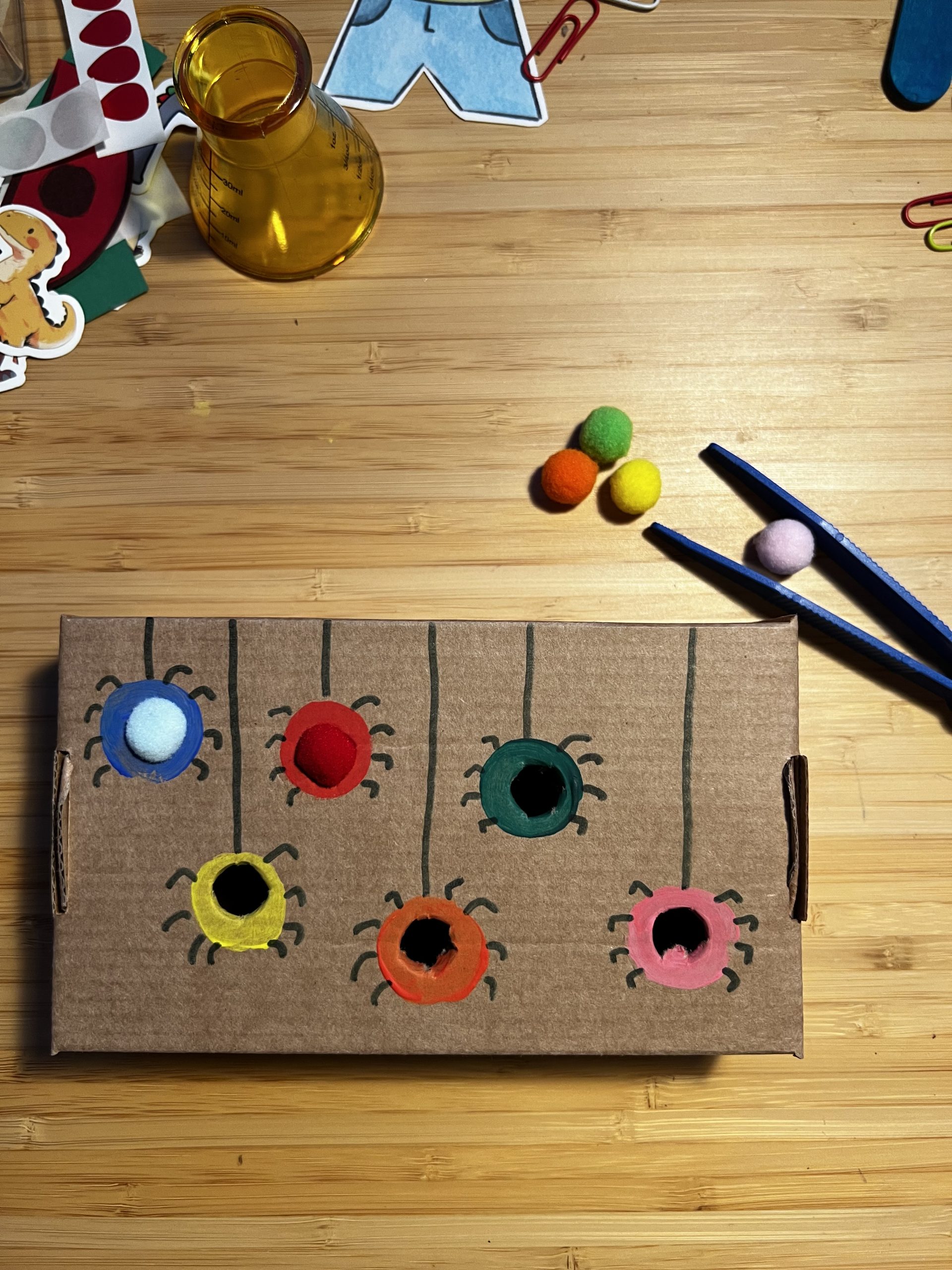 🧺 Cutiuță pentru bețe și pom-poms – exerciții de coordonare și răbdare.